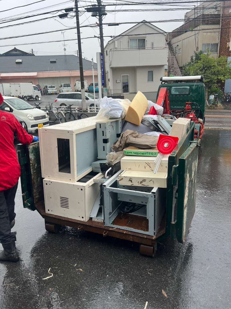 弊社は基本的に屋内作業ですので仕事にはさほど影響ないのですが、こんな雨の日に産廃会社さん呼んでしまい雨に打たれながら現場で出た産廃をトラックに積み込みましたwww